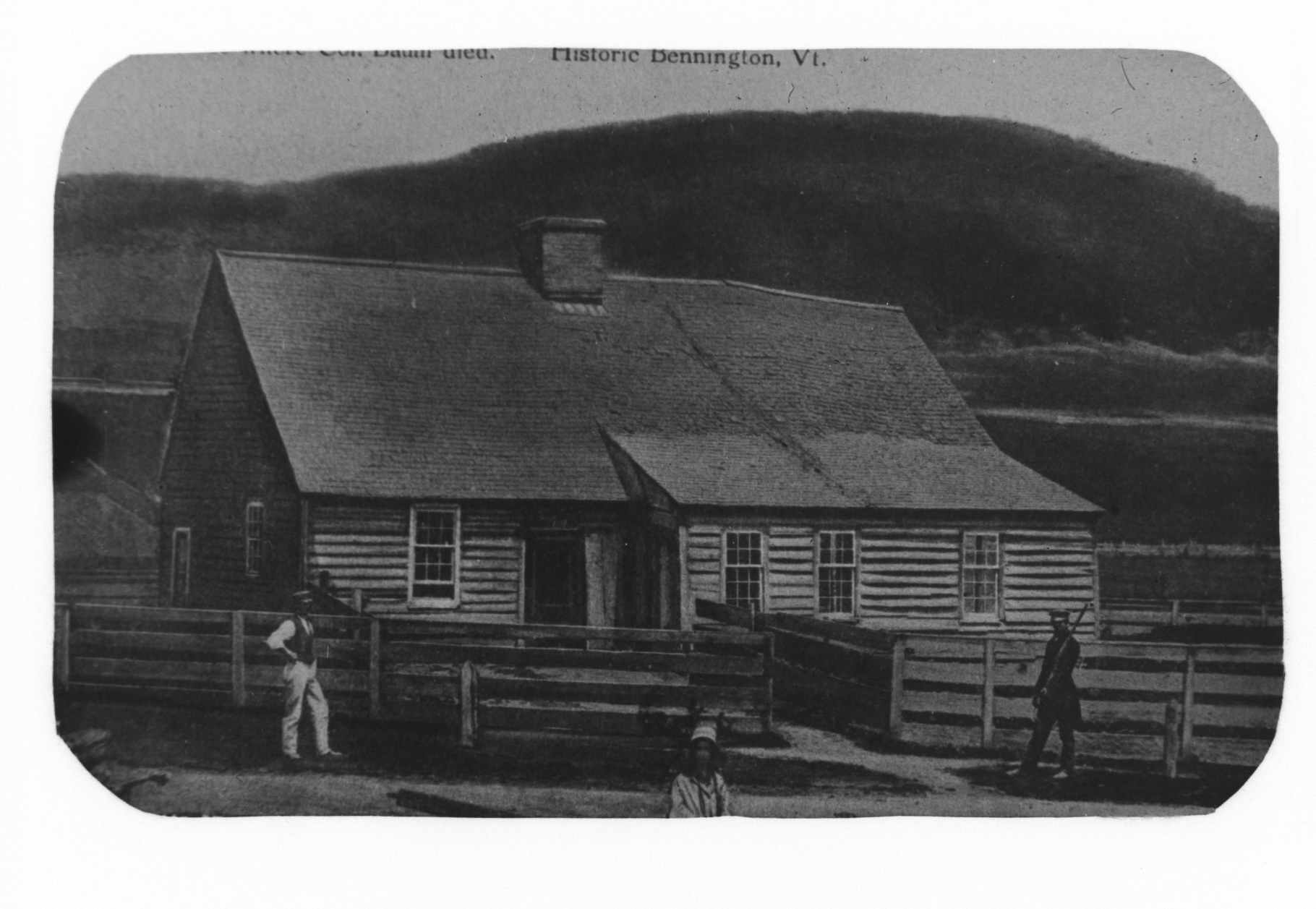 “Log House and Soldiers at Historic Bennington, Vermont,” Rockingham Library Historic Photograph Collection, accessed December 10, 2025, http://www.rockinghamlibrary.org/history/items/show/12242.
