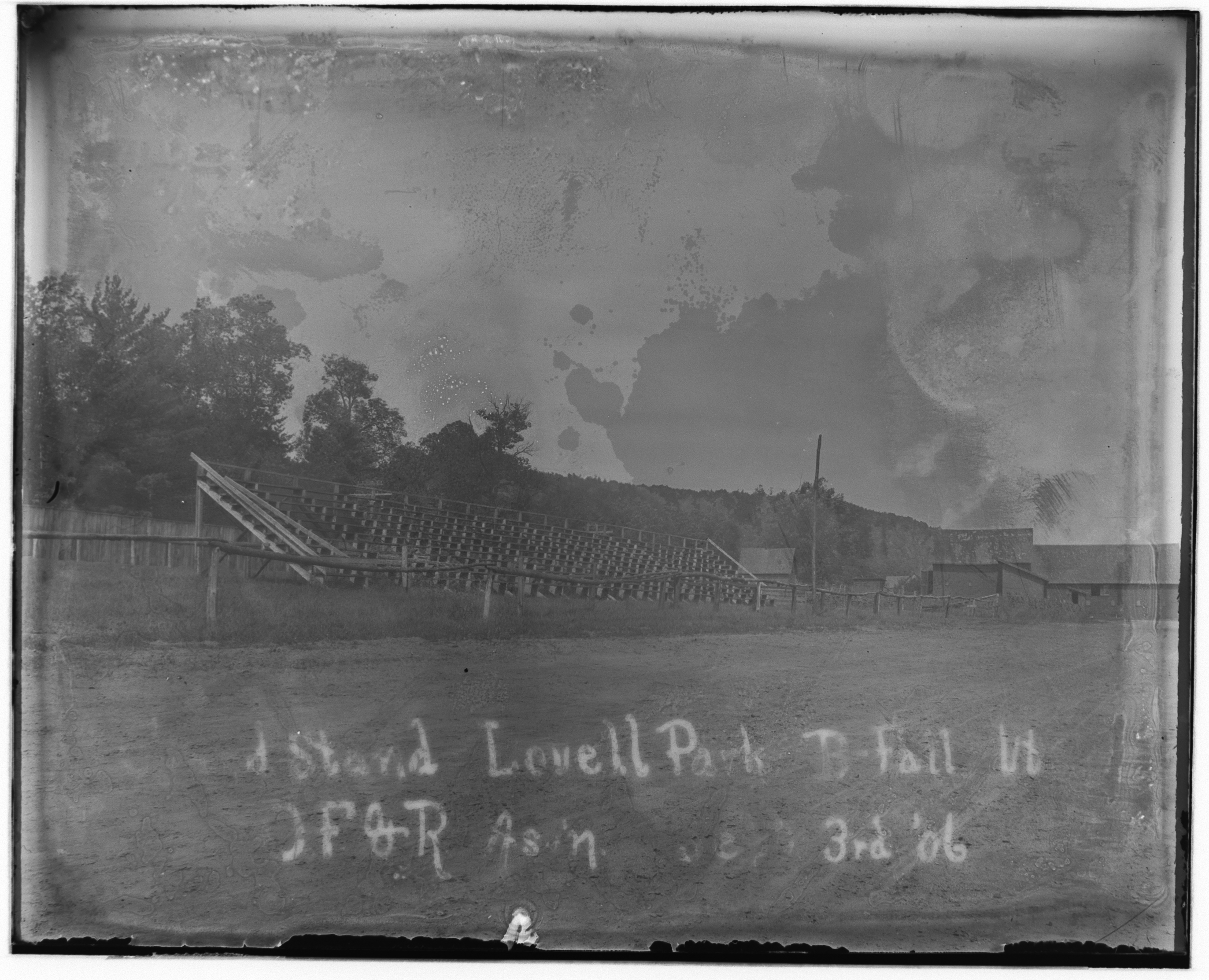 Portrait of grandstand at Lovell Park Bellows Falls, Vermont September 3, 1906