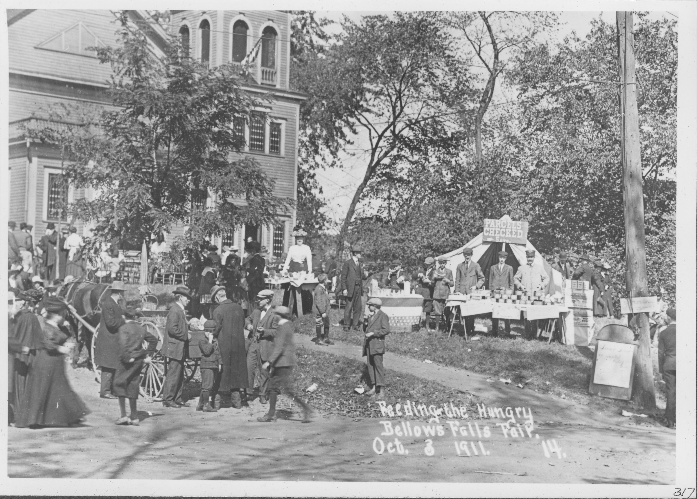 Food Sale & Parcel Checking. Baptist Church Lawn. Bellows Falls Street Fair. 10/3/1911.