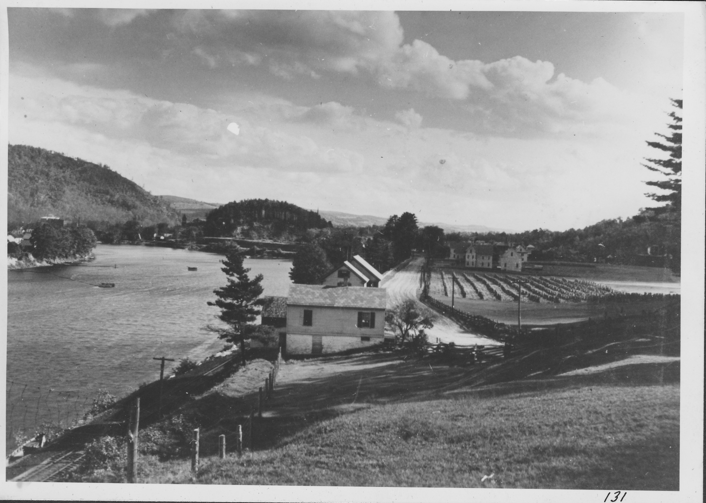 Rockingham Street. Bellows Falls, VT. Showing river view and Morgan Field with harvested corn. Late 1800s.